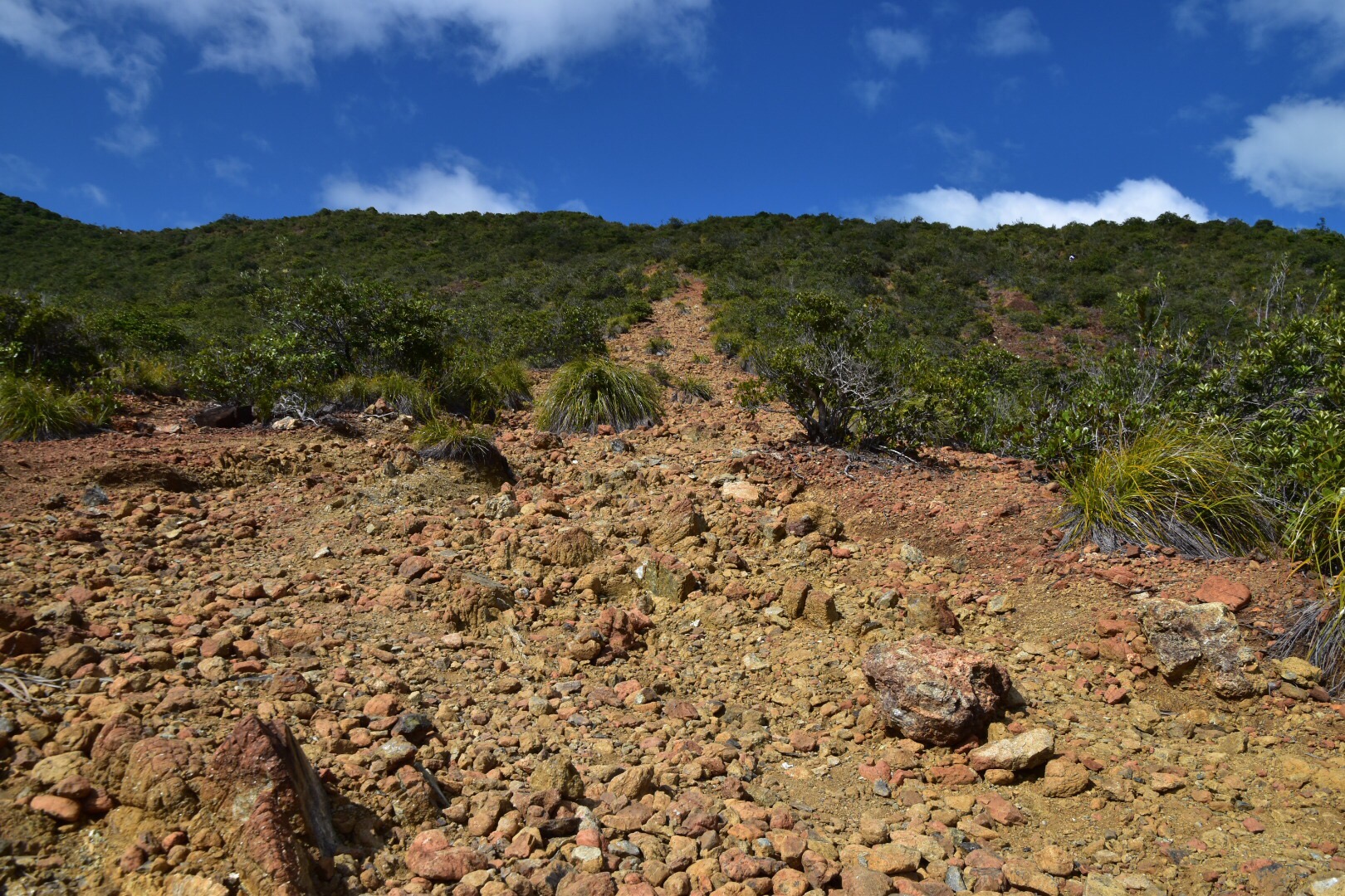Dressed properly in jeans and basically plimsoles in pretty sweaty weather with no water I was looking forward to a nice easy stroll to a picnic table. Well. This better be a great picnic site because the path is certainly telling a different story to the one I have in my head.