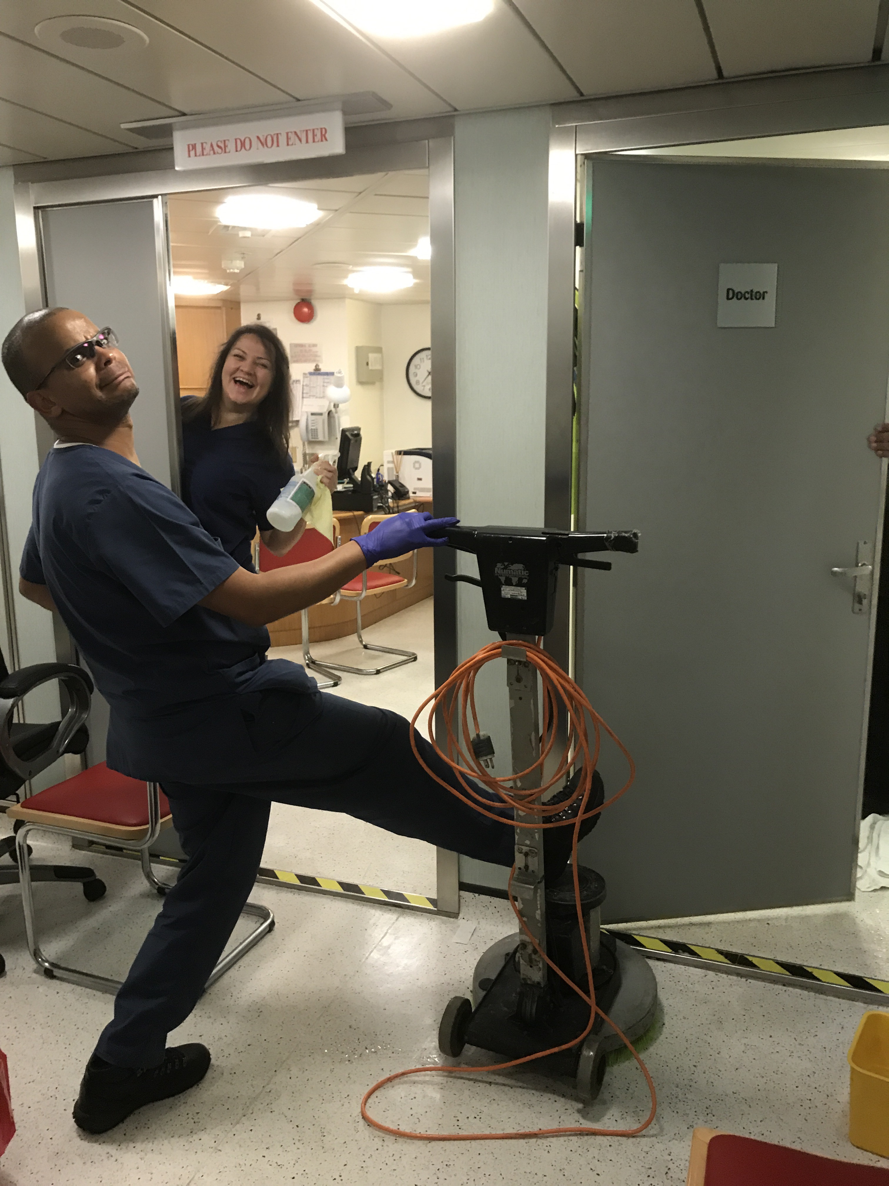 How do I follow an office pic…?! Well maybe a pic of some of the team spring cleaning ready for a public health inspection…