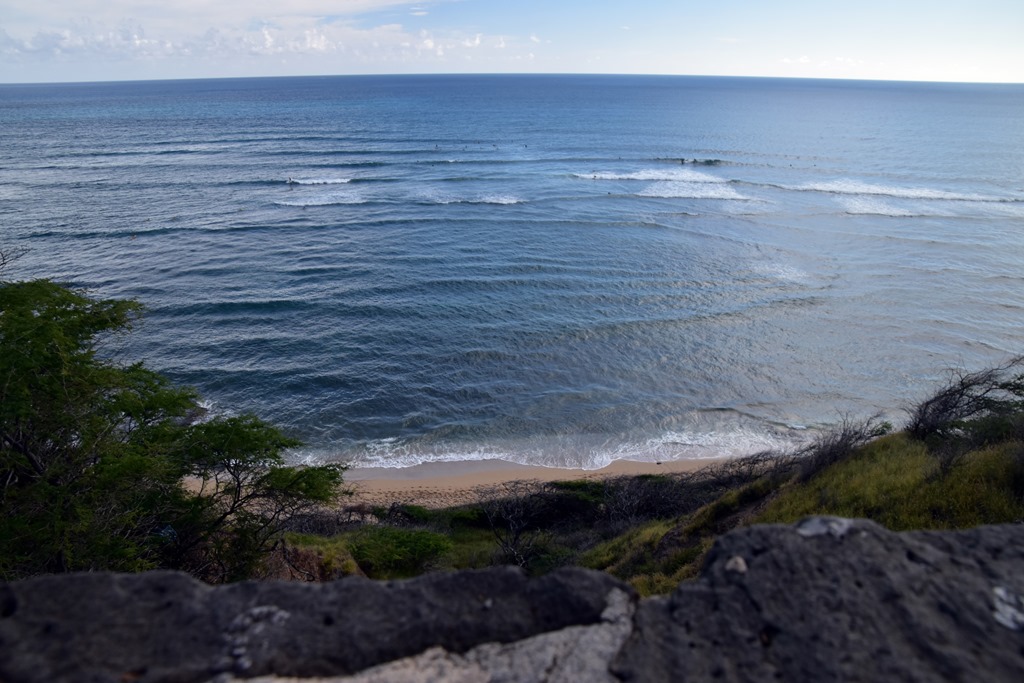 Beautiful isn’t it. If you look a bit closer you can probably see little dots bobbing around on the sea.  These are the clever little surfers that avoid the busy Waikiki beach and head round to the beach parks near Diamond Head. Clever little monkeys I say. You avoid all the crowds of tourists and get to hang out in a nice community of surfers. I’m sure there’s a lot of surfer jargon happening down there. Makes me want to join in but unfortunately I have no time… (plus I don’t speak surfer that well.)