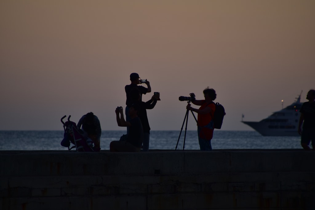 Eventually I had to head back to the ship, and after realising that I had timed it pretty much perfectly, I jumped in the shower, then ran back off the ship and into a taxi to head back to Waikiki beach to watch the sunset while sitting on a (very warm) wall facing the sea. It didn’t take me long to find the silhouettes of people just as interesting as the actual sunset itself…